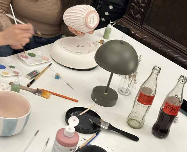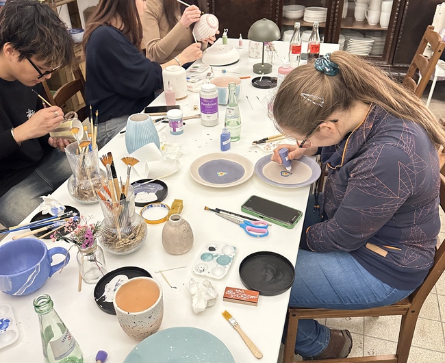 Zu Beginn gab uns die Kursleiterin eine kurze Einführung, erklärte die verschiedenen Techniken und gab hilfreiche Tipps zur Gestaltung unserer Keramikstücke. Danach konnten wir für 2,5 Stunden in die Welt der Farben und Muster eintauchen. Zur Auswahl standen Teller, Tassen, Teelichthalter, Eierbecher und Vasen. Ob minimalistische Designs, bunte Muster oder persönliche Botschaften – jeder konnte sich kreativ austoben und ein individuelles Kunstwerk gestalten.