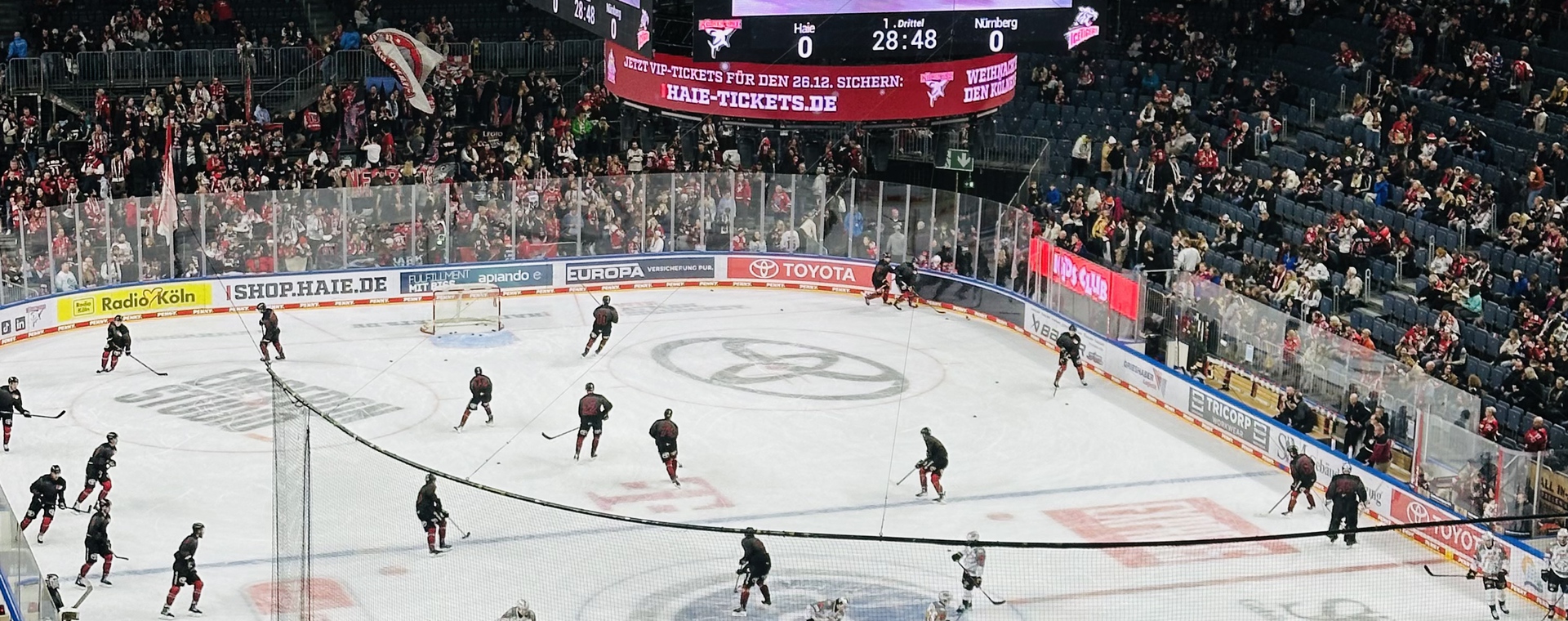 Am Freitag, dem 5. Dezember, fand unser Community Event in Köln stat.. Gemeinsam mit unserer Community Managerin Christina machten sich die Kölner Studierenden auf den Weg in die Lanxess Arena, um das Spiel der Kölner Haie gegen die Nürnberg Ice Tigers live zu erleben. Das Match begann um 19:30 Uhr, doch wir waren bereits gegen 19:00 Uhr vor Ort – genug Zeit also, um uns mit Snacks, Getränken und einer ordentlichen Portion Vorfreude einzudecken.